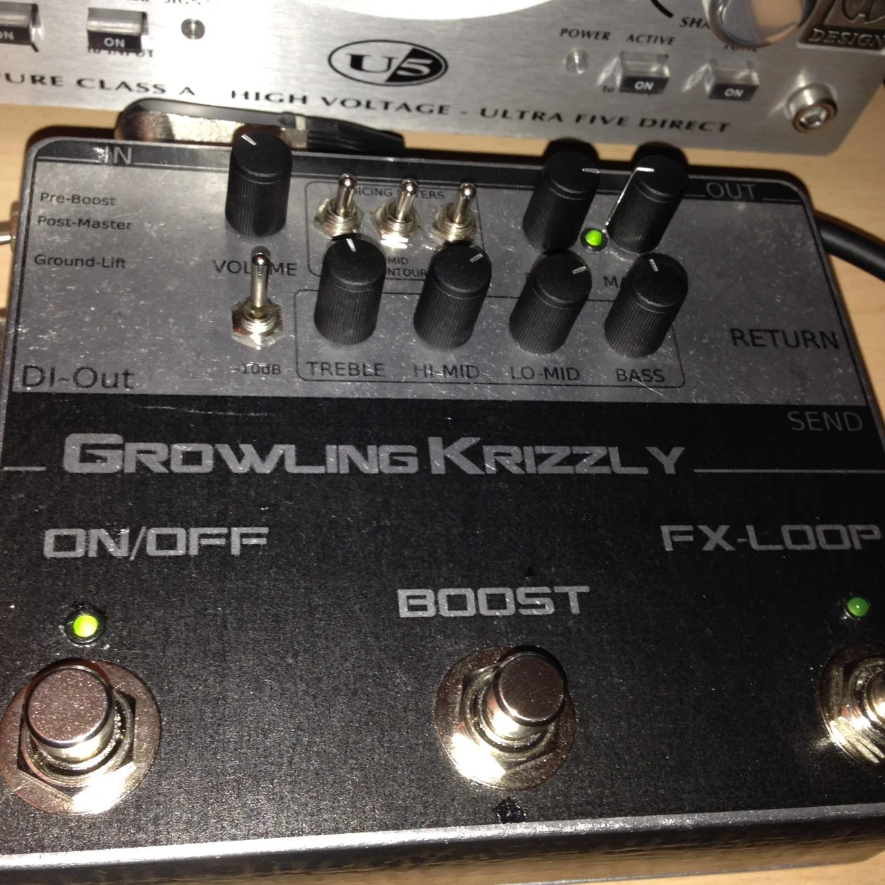 Am SVT eher mau. Da hatte ich mir mehr erhofft. Vor dem Amp irgendwie ziemlich überflüssig, vor dem Power Amp keinen Deut besser als über die Crest, im Gegenteil. Die hatte mehr Kraft und packte vor allem viel krasser zu. Die Höhen waren nur über die 810er erträglich, mit der 2x12er: Glasbruch-Alarm.