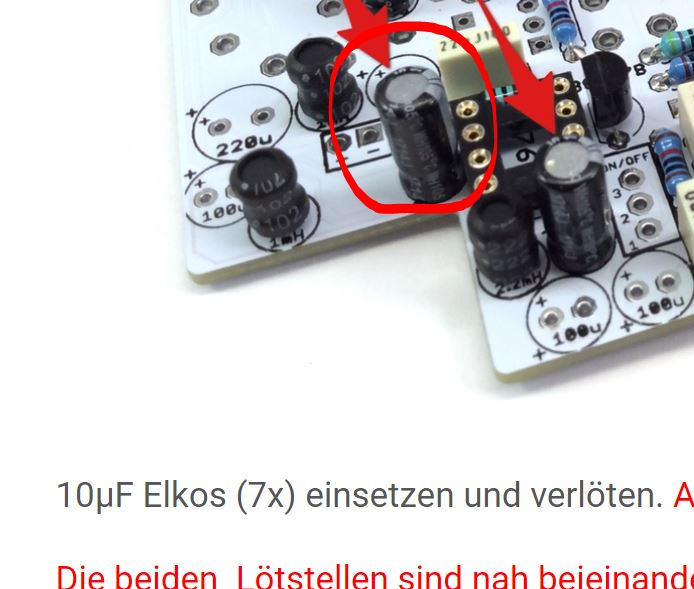 Dem freundlichen Hinweis in der wirklich hervorragenden Anleitung konnte ich wohl unterbewusst nicht widerstehen, um zu sehen was in der Praxis passiert...Die beiden Lötstellen sind nah beieinander, Lötbrücken gilt es zu vermeiden!
