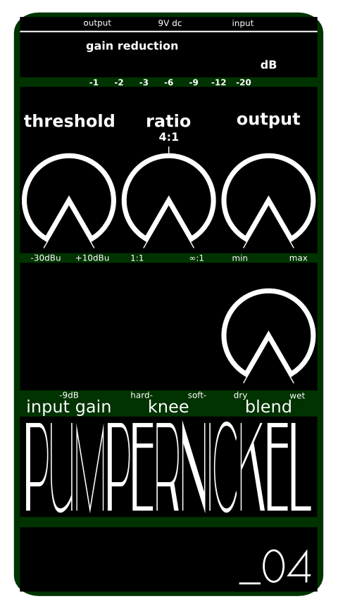 Der Pumpernickel hat noch den Codenamen "C_04D". Ganz am Anfang hieß er nämlich "comp _04 dummies", weil er ohne Attack und Release Regler auskommt. Ja ich weiß...ist n schlechtes WortspielMir ist grade in deiner Signatur aufgefallen das der Pumpernickel noch ein Kürzel braucht PPN_04 zum Beispiel![]()