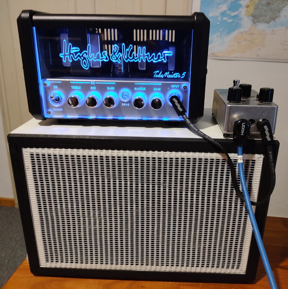 Ich benutze ihn, um bei meinem kleinen Bastard die Vorstufe etwas härter anzufahren - es gibt nämlich nur Master, kein Gain. Der Sound wird sehr angenehm angedickt, komprimierter; die Zerrung kann ich mit dem Höhenregler etwas zähmen, so dass sie nicht mehr als solche wahrnehmbar ist. Das Ding liegt oben auf dem Amp, treten muss ich nicht.