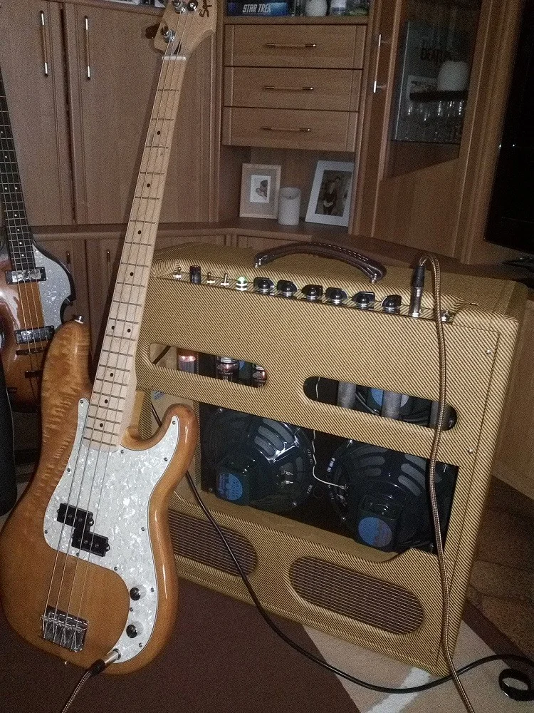 So einen benutze ich in meiner Zweitband.Mit seinen 40-45 W und den 4x10" Speaker ist es echt unglaublich,was da an Lautstärke und Klang herauskommt.