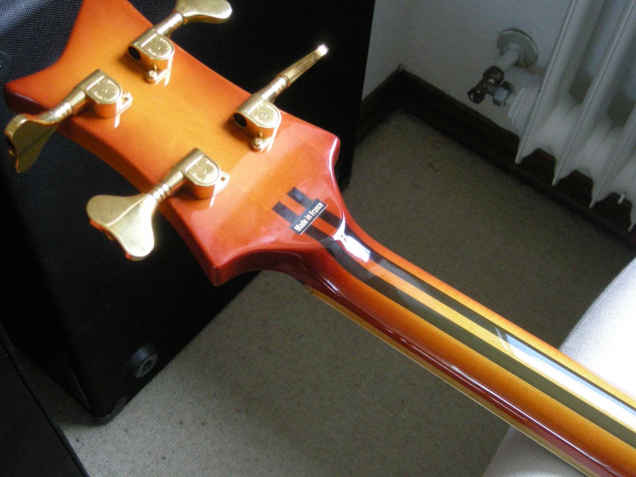 Die Wal-Bässe haben im Hals 3 CFK-Stangen, die in T-Form angeordnet sind.