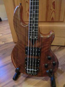 War schon witzig, aber für live etwas komplex wegen der ganzen Kabel. Der Walsound selbst war aber natürlich auch der Wahnsinn - wie bei allen. Allerdings haben die Midi Wals die ganzen Verdrahtungen unter einem Plastikgriffbrett verbaut. Darunter ist dann Ebenholz (und der Rest: zwei Grafitstäbe, Hornbeam, Maple, Mahagonistreifen).