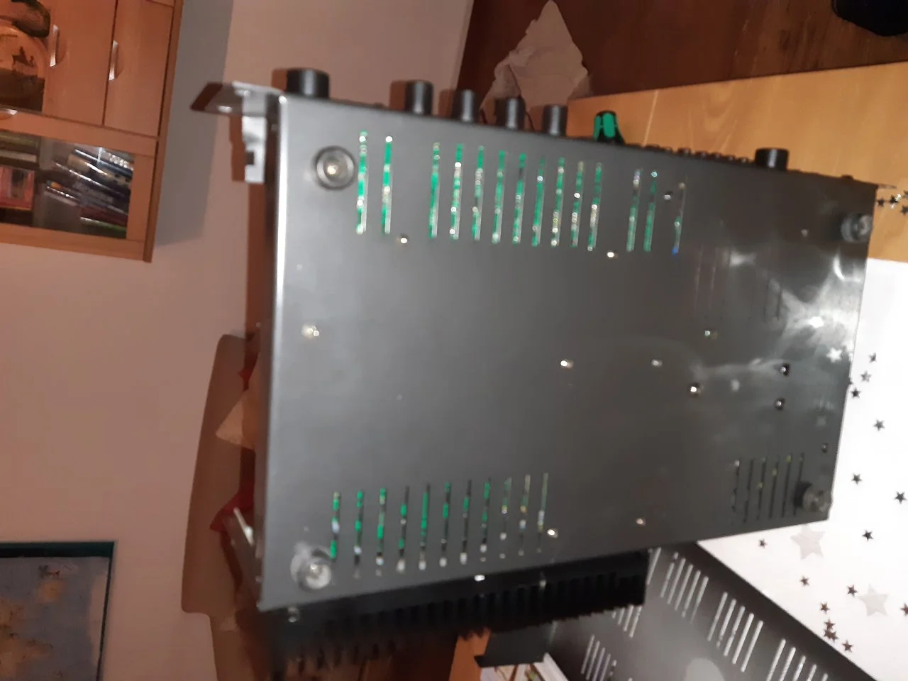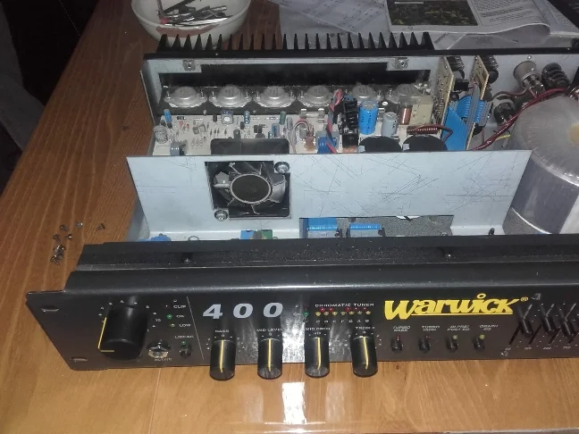 Mein Sohn hat sich vor Kurzem einen Warwick 400 zugelegt,gebraucht zu einem guten Preis.Den Klang finde ich gut.Was mich wundert,ist der laute Lüfter ,der sofort anläuft, wenn man den Amp einschaltet,auch wenn er auf Standby steht.Ist das normal?Ich habe einen Verkäufer auf Ebay angeschrieben,der den gleichen Amp verkauft,der meinte,sein Amp habe garkeinen Lüfter.Optisch ist es definitiv der gleiche Amp.Hier ein Foto von dem anderen Amp: