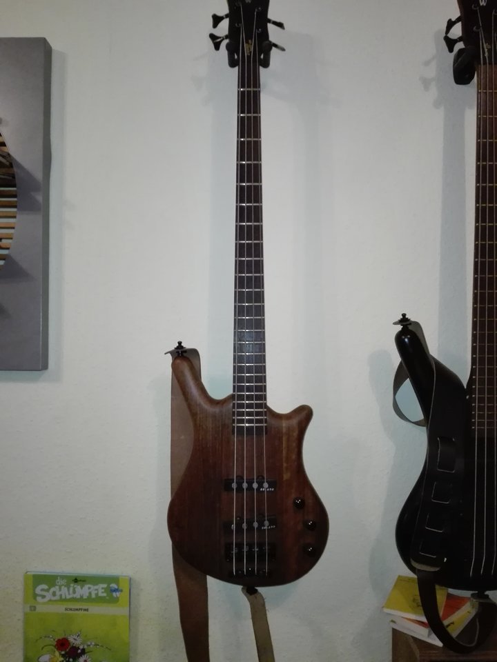 Warwick Thumb Bolt On von 1999. Den Bass habe ich gegen einen Corvette Standard 5 getauscht, da ich eingesehen hatte, dass mir 4 Saiten reichen. Der Zustand war leider eher meh, weswegen ich ihn komplett gerefinisht, den Bananenhals begradigt, Bünde abgerichtet und die komplette Hardware auf Vordermann gebracht habe.