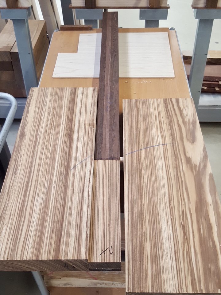Super schick, und ein bisschen schon ein richtiger Bass. Nur noch die wings anleimen, CNC Routen, Elektronik rein, und Saiten druff