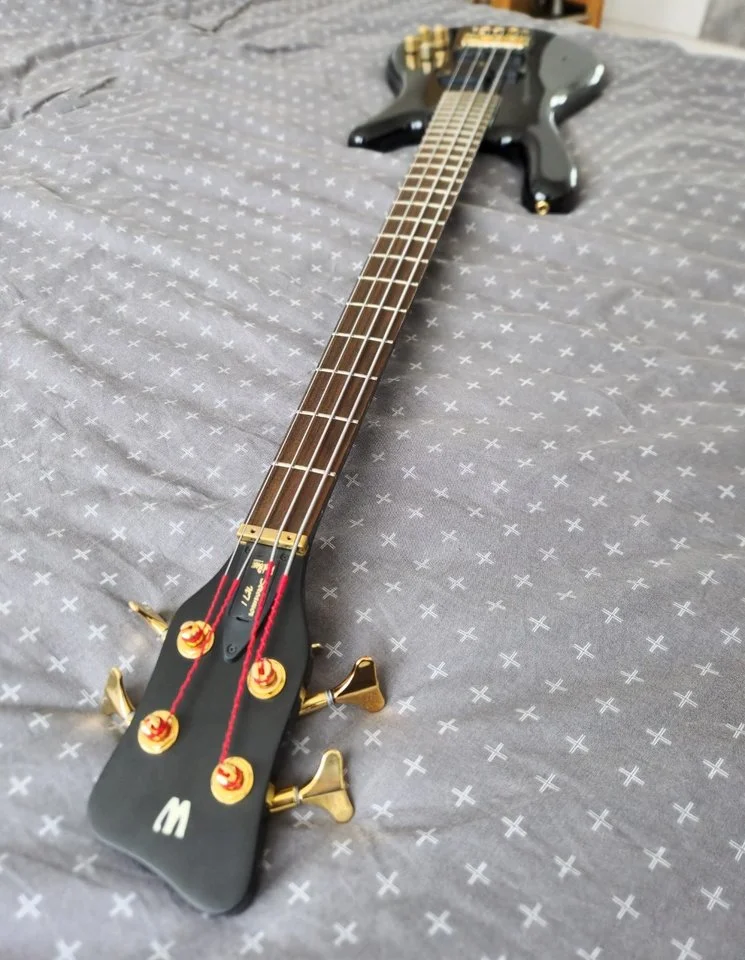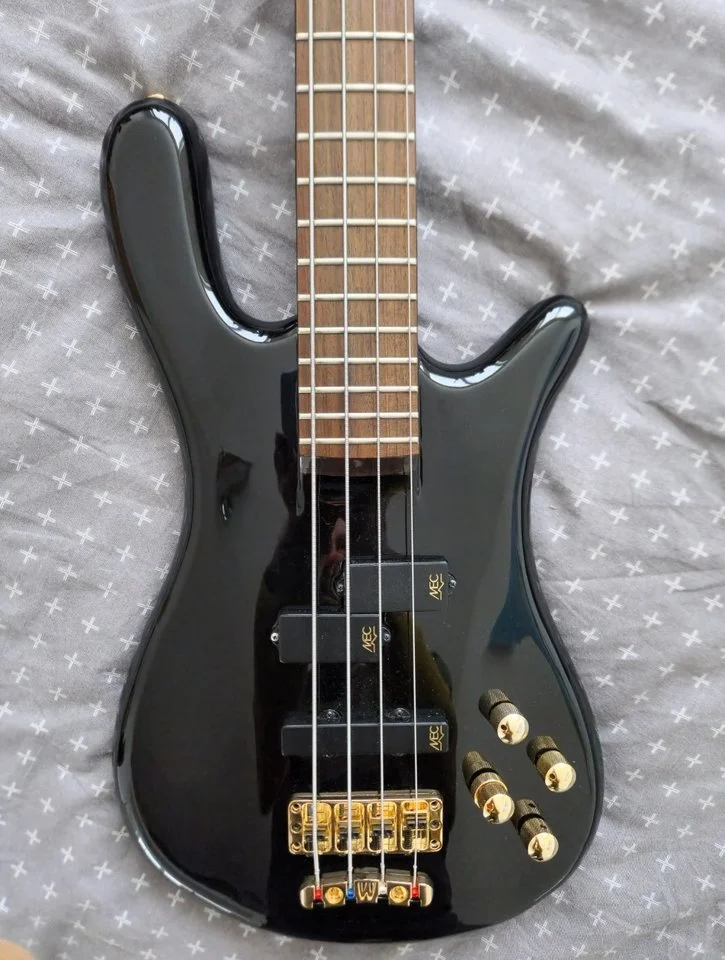 Mein neuer Warwick.Vor 2 Wochen bei mir eingezogen.Der freundliche Vorbesitzer,hat ihn mit hochwertigen neuen Mechaniken nebst einer Glockenklang Elektronik aufgewertet.
