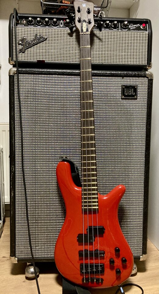 Eigentlich beobachte ich schon seit Jahren 4er Spector Bässe in diesem wunderbar polarisierendem 80s Style Rotton. Man soll ja keine Bässe nach Farbe kaufen, aber die Dinger finde ich einfach geil. Leider ziemlich teuer und eigentlich habe ich auch mehr als genug Bässe, daher blieb es beim Beobachten.