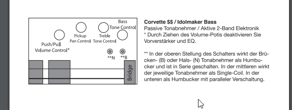 Warwick selbst hat mein Freund auch schon angeschrieben. Leider hat es uns nicht weiter gebracht. Die Aussage war, im seriellen Betrieb sind Humbucker eben lauter und natürlich die Frage ob wir uns nicht mit der Stellung vertan haben...