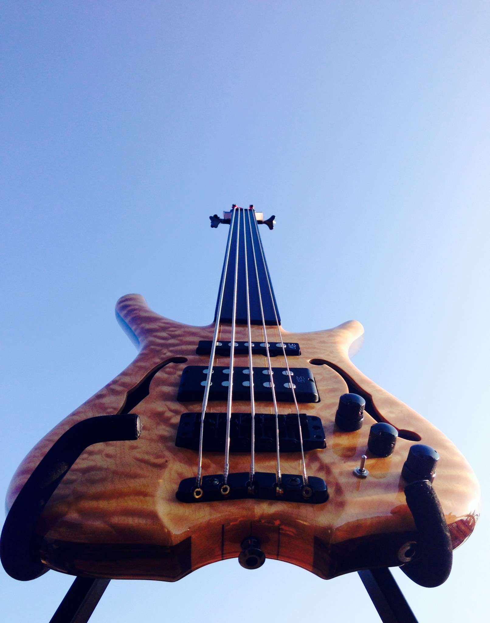 Ich suche die ganze Zeit eine Cam, mit der ich sowohl gute Fotos als auch gute Videos machen kann. Das Problem ist meistens das Bühnenlicht, das bei den Cams den Focus durcheinanderbringt. Habe aber auch keine Lust, in zwei Geräte zu investieren (Cam und Go Pro zum Beispiel). Bis dahin hier einfach ein Foto von einem anderen Limited: 2000er Infinity birdseye maple.