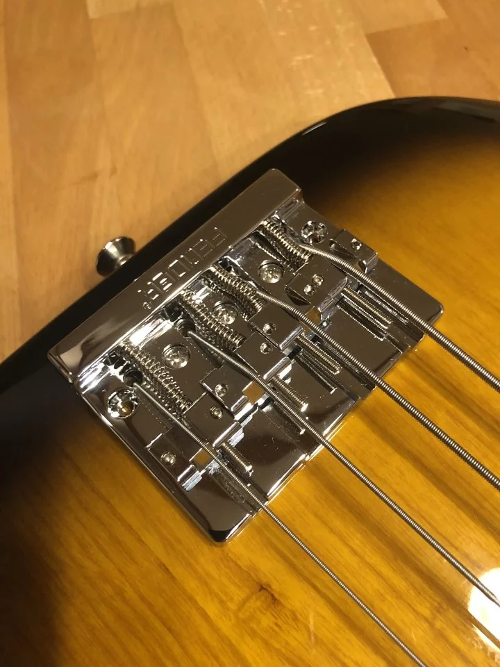 Mein Sting Preci hat original die 2-saddle Bridge. Historisch wohl korrekt, aber funktional betrachtet nicht meins. Also nach nem passenden Replacement gesucht. Der Bass sollte möglichst unverbastelt bleiben, Rückbau auf Originalzustand jederzeit möglich sein. Und String-Through-Body sollte ebenso möglich bleiben, wie Top Load (was bei der 2-saddle gar nicht geht)