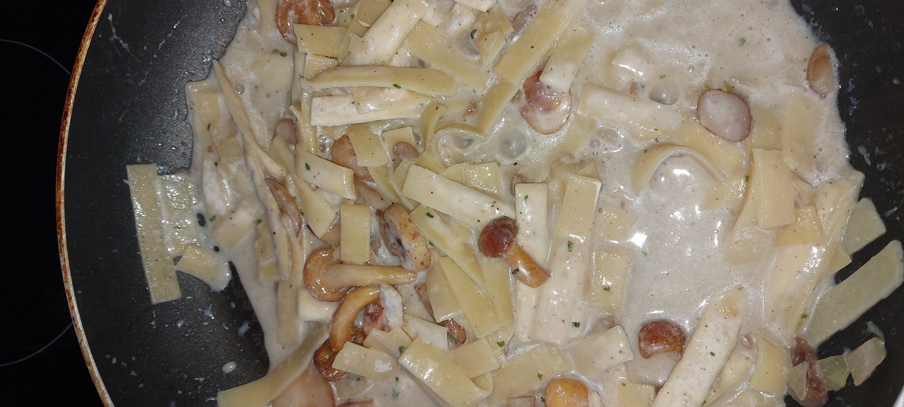 Bandnudeln mit Champignons und Steinpilzen in einer Sahnesoße...