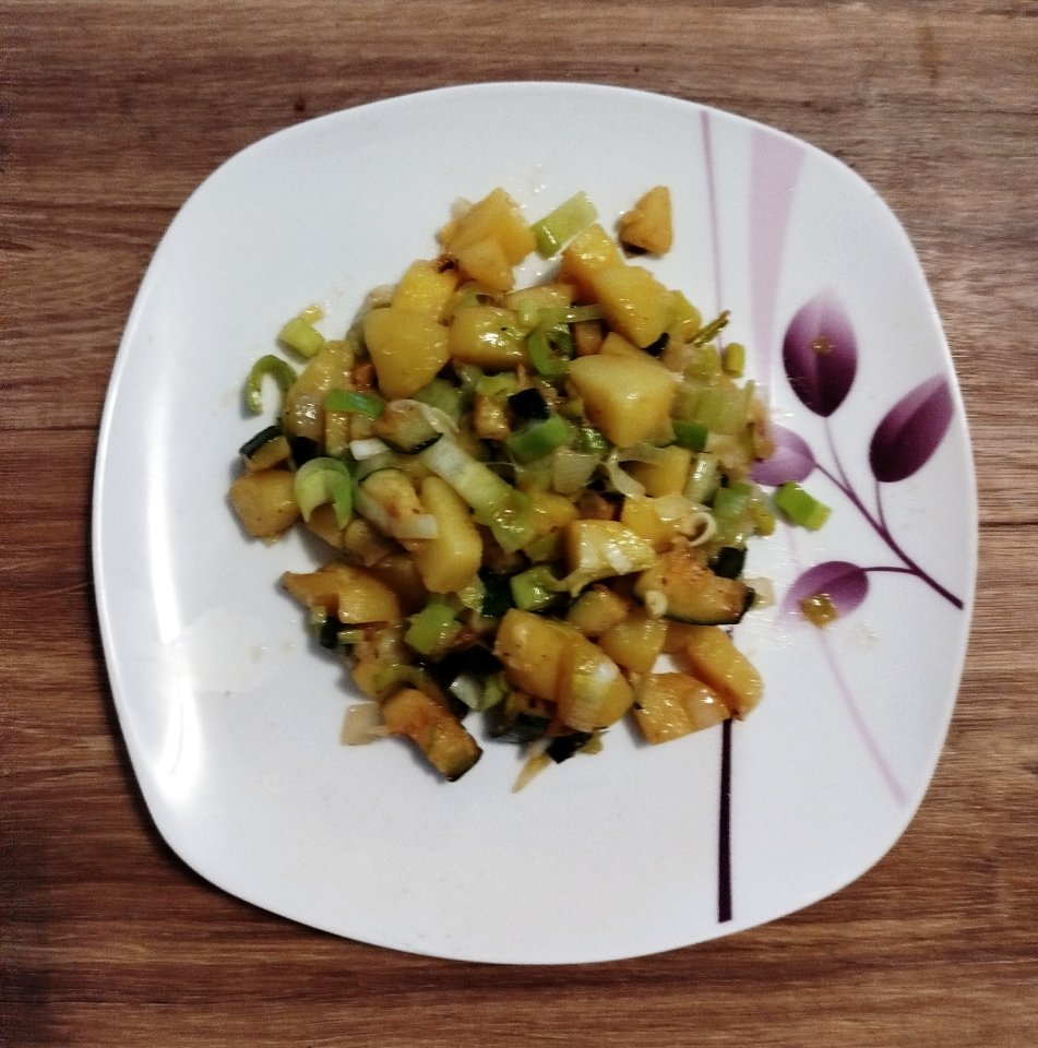 Statt Petersilie hatte ich Rosmarin. Und Knoblauch kleingeschnitten. Alles gebraten in Olivenöl.