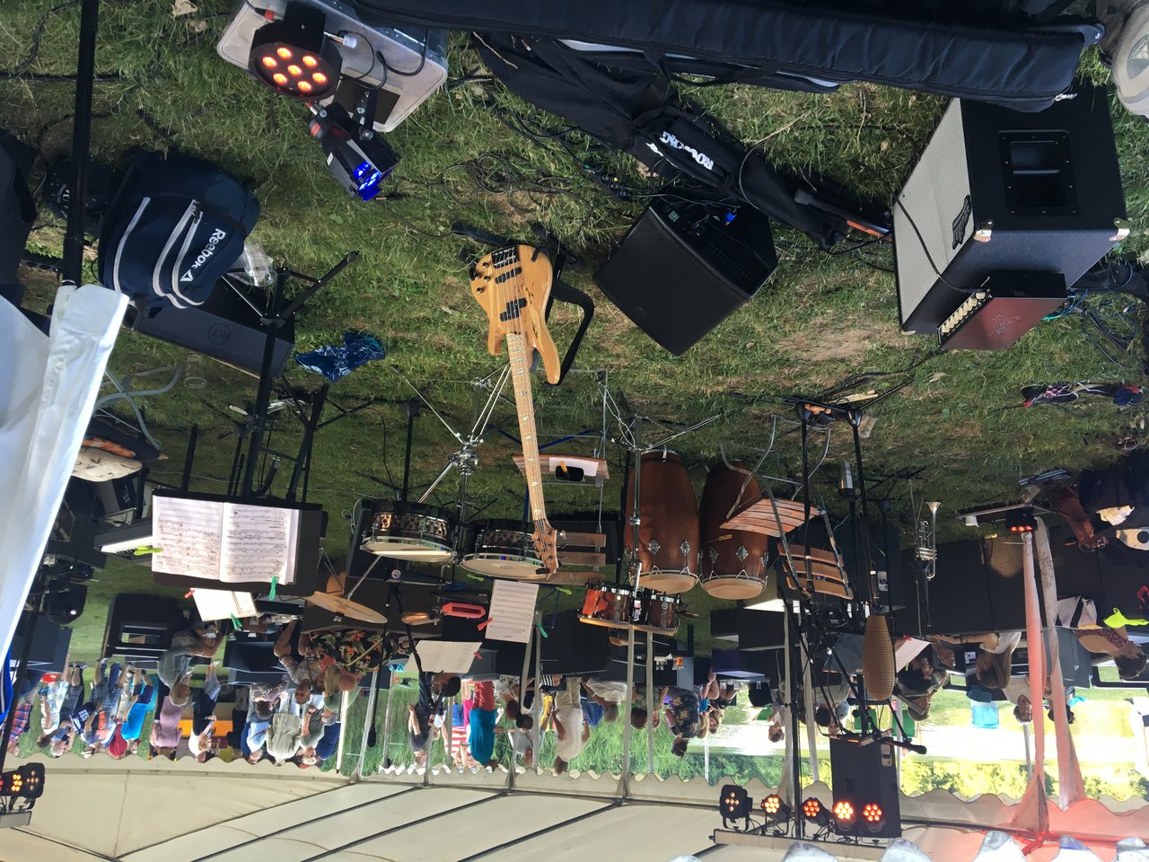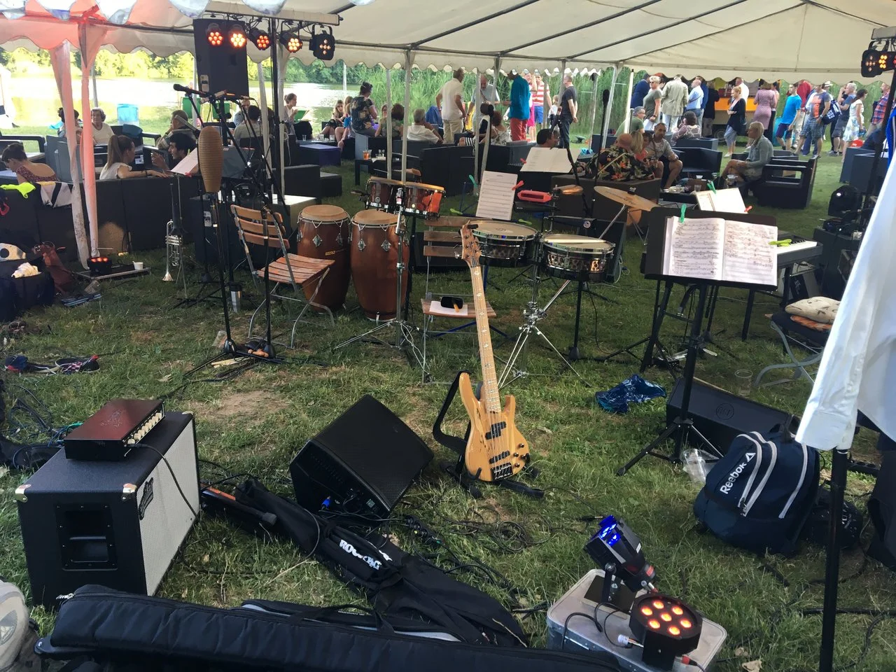 Der Aufbau meiner Sachen dauert 5 Minuten. Ich habe immer mit einen Bass (im Gigbag), 2 Kabel, Ersatzsaiten, Einstellwerkzeug, Notenständer, Noten (falls nötig), Wäscheklammern, Cliptuner, Lautsprecher in hülle, Amp in Hülle. Passt in jeden Kleinwagen/Taxi.