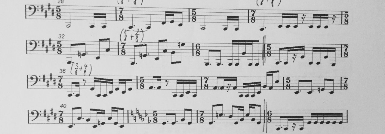 Was sind das denn für komische Tabs?Neue Prog-Band... Da muss ich schon ganz schön kämpfen...Macht aber auch Spaß, wenn man so ganz langsam anfängt, die Taktwechsel zu fühlen anstatt nur auszuzählen.