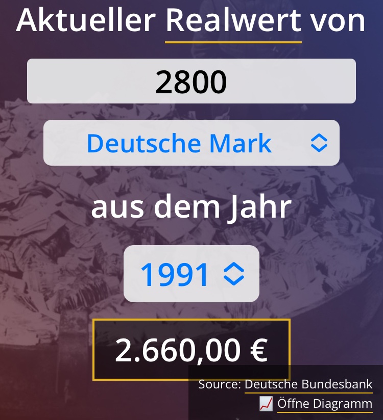 Der Rechner rechnet nur den reinen Geldwert um, daher stimmt das wohl schon.das stimmt so nicht, der Standard Stick geht heute bei 3400€ los. Diese Umrechnungstabelle hat nichts mit den aktuellen reellen Neupreisen für Dinge zu tun.