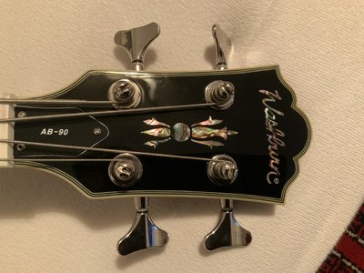 Och Leute, so wenig Washburns? Dann hau ich mal meinen Acoustilectric rein: Ist ein AB90. Hatte das Glück, den über Reverb aus Paris zu erwerben, zum Glück in einem makellosen Zustand. Die Zargenbuchse war lose, der Hals so verstellt, dass er fast unspielbar war, und der Saitenhalter war angelaufen. Nach der Putzstunde kam er makellos raus. Alles eingestellt und erstmal testen. Der Bass klingt ganz wunderbar, voll und fett mit Höhenanteilen nach Wunsch. Das Instrument reagiert sehr feinfühlig auf das, was man damit veranstaltet, da muss ich reinwachsen, ich kann das noch gar nicht ausschöpfen. Insgesamt ist er riesig groß, ich wollte den ranzigen Original-Gigbag ersetzen gegen einen ordentlichen, aber keiner passt. Wie man ein so sorgfältig gearbeitetes Instrument mit hohlem Korpus in einem so lumpigen Gigbag ausliefern kann (an den Seiten, wo der Reißverschluss sitzt, war keine Polsterung), geht mir gar nicht in den Kopf. Bindings überall, der Hals kommt mir immer filigran und elastisch vor, vor allem, wenn man vorher ein Fender-Stullenbrett in der Hand hatte.