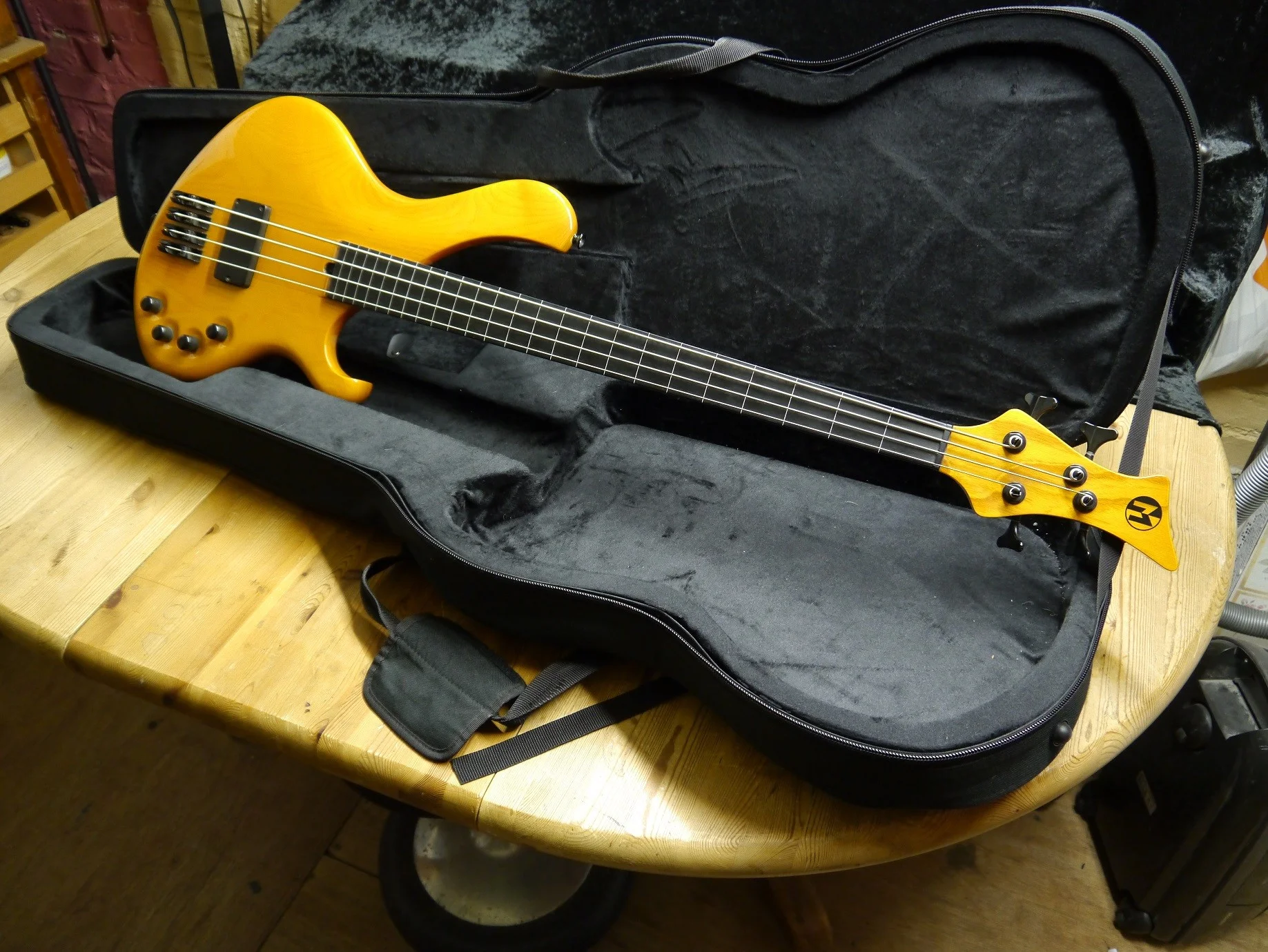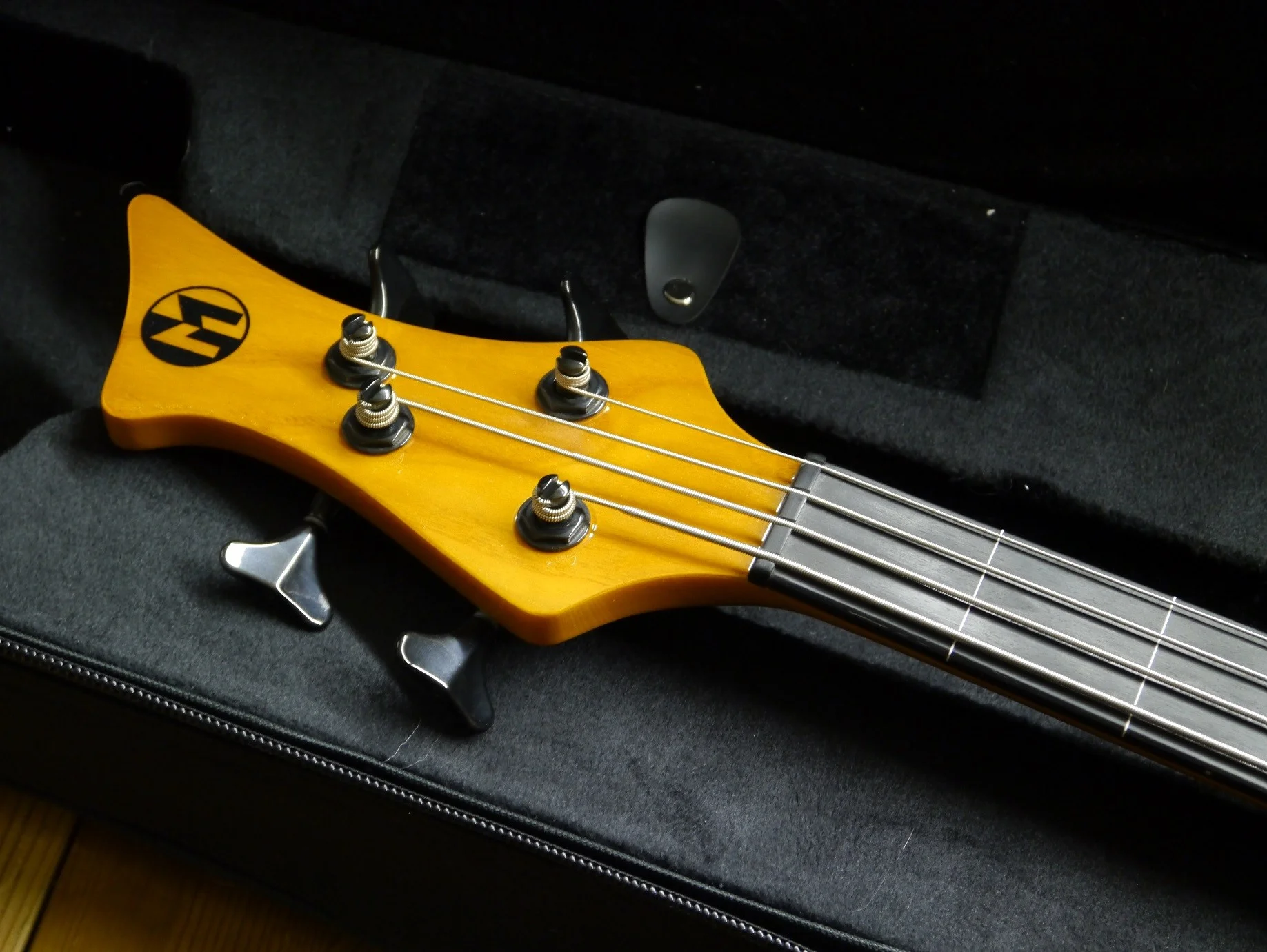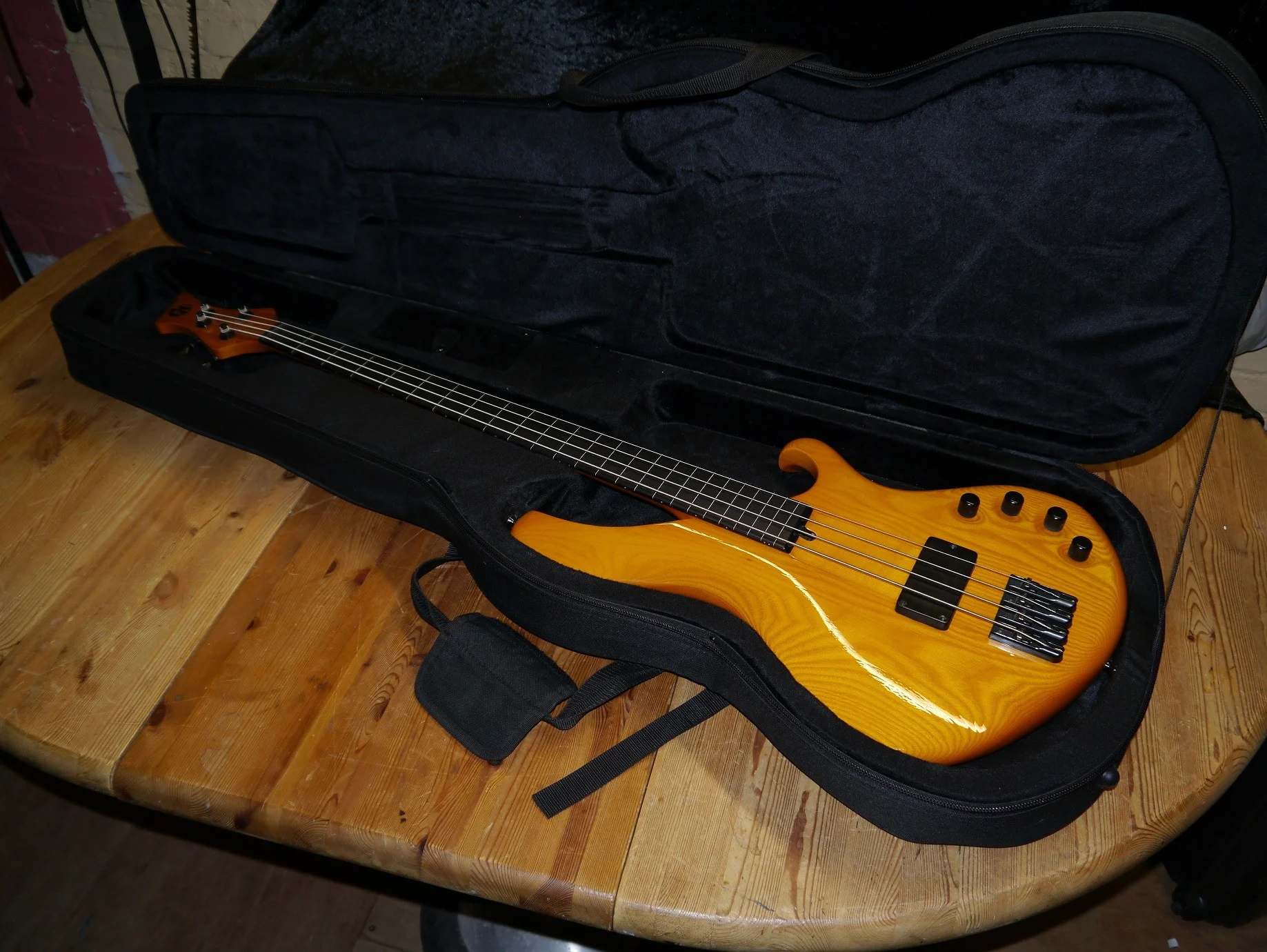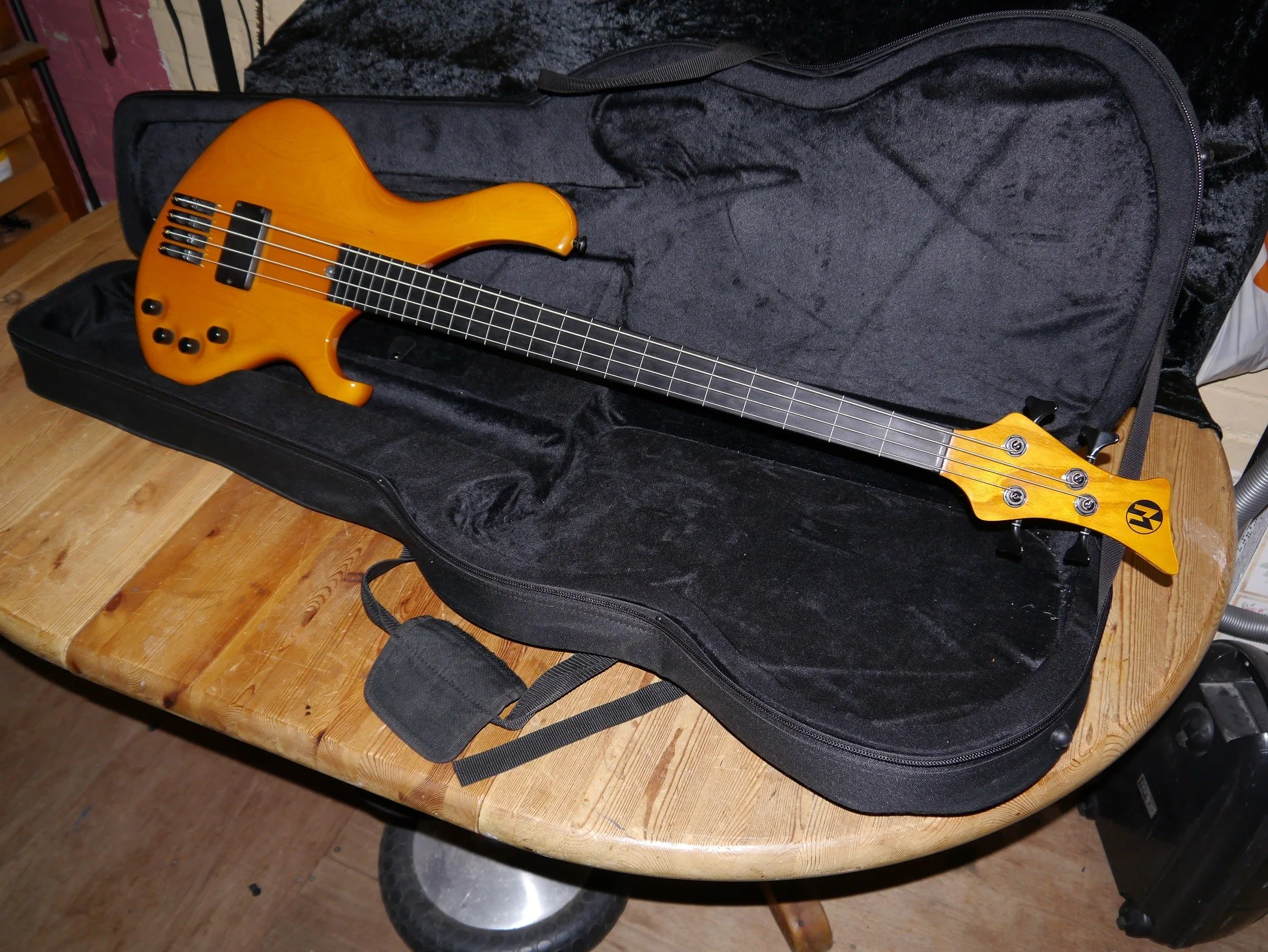 Ich biete einen Maruszczyk Frog Fretless 4 Saiter zum Verkauf. Die Specs: Bassculture Humbucker; Noll TCM 3 Elektronik (kann auch passiv geschaltet werden); Hals Ahorn (in den Korpus eingeleimt); Griffbret Ebenholz; Korpus leichte Esche; Gewicht ca. 3,7 KG. Sound und Bespielbarkeit sind hervorragend, der Zustand ist sehr gut, es gibt wahrscheinlich wie immer irgendwelche kleinen Kratzerchen, ich finde noch nicht mal welche im Bereich der Gürtelschnalle! Absolut kerzengerader Hals, eine sehr niedrige Saitenlage ist schnarrfrei einstellbar. Zum Bass gehört ein Rocktile Leichtkoffer, in dem er sehr gut aufgehoben ist. Preis: 650 Euro inklusive Versand innerhalb Deutschlands, der Selbstabholer erhält einen Rabatt.