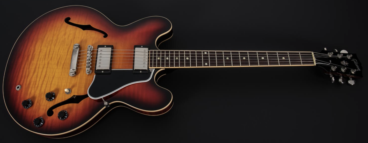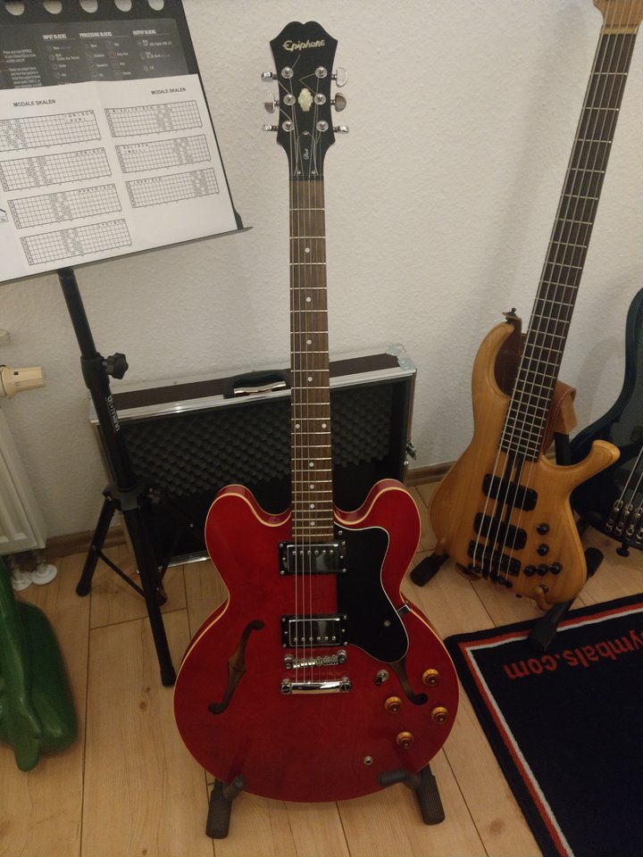 Die ES-335 ist von 2014; also schon noch eine "neue". Eigentlich sollte es etwas mit P-90 werden, aber 335er mit P90 sind gebraucht gar nicht mal so häufig. Wirklich ältere mit P90 findet man durchaus (gerade weil auch 390 oder 349 in Frage gekommen wäre), aber die fielen / fallen dann allermeist eher deutlich aus dem Budget (oder haben die völlig falsche Farbe oder so ...).