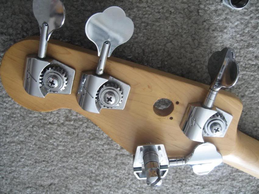 Der Hals hat ja von vorne geschraubte Mechaniken und je 2 Bohrungen um diese von hinten zu fixieren.