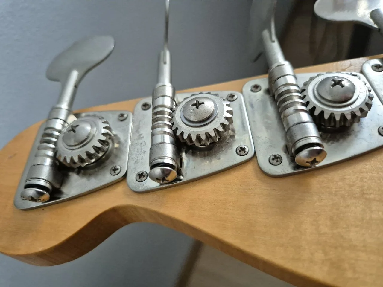 Habe bisher noch keine Fender Mechanik mit Gängigkeits-Schraube gesehen.Den üblichen 70er Fender Mechaniken