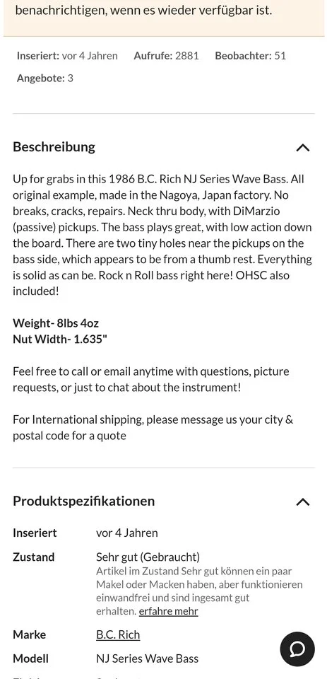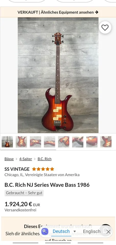 Jau,da ist das gute Stück.B.C.Rich 80'ies Wave Bass