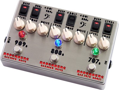 Die vier Treter sind bei mir hängen geblieben. Veräußerbar sind davon nur die Dunkelgläser. Der Multicomp bildet sozusagen den Standard für Stompbox-Kompressoren, der Rodenberg ist von Sound und Routing her völlig konkurrenzlos.