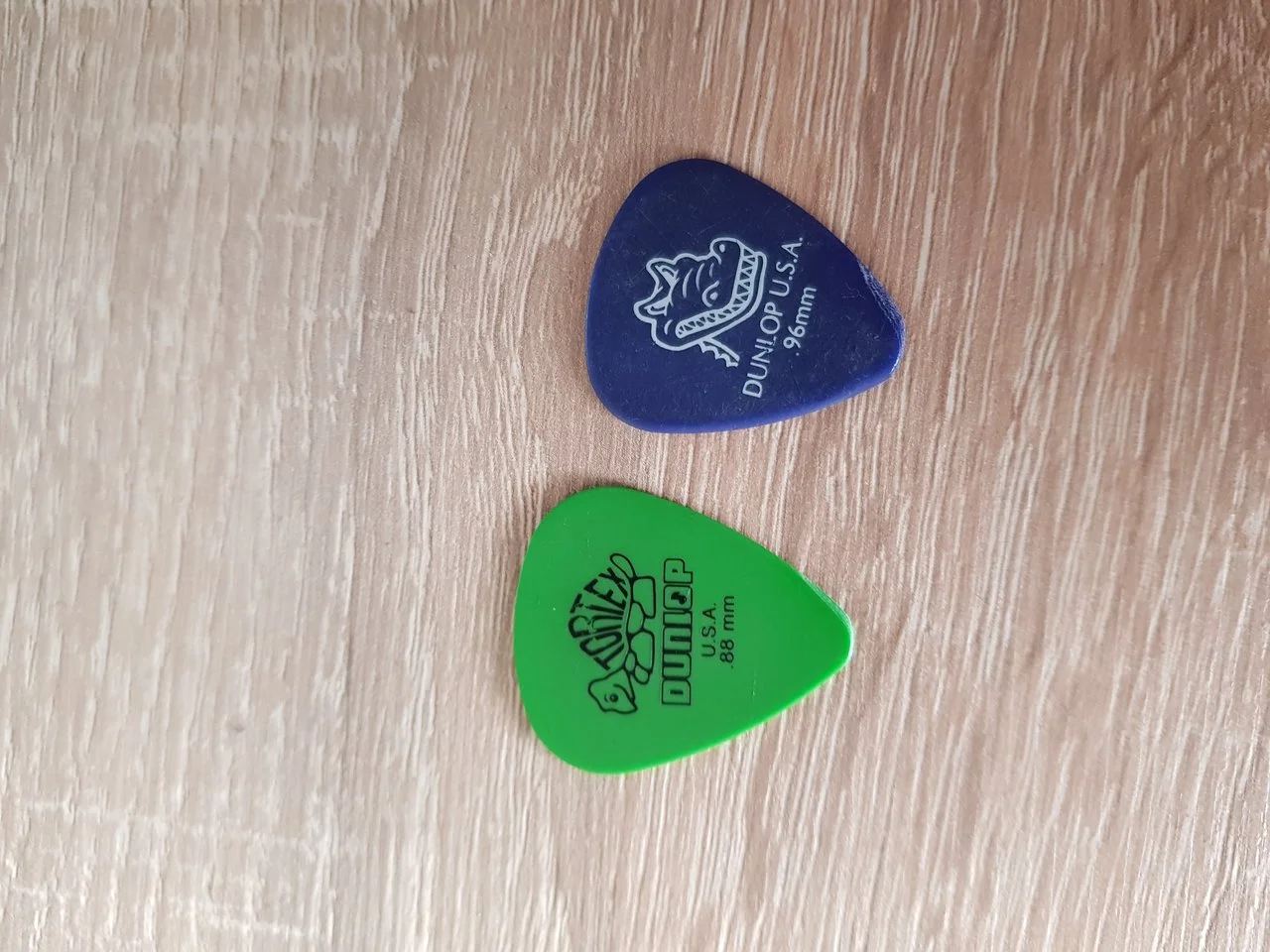 Auf der Gitarre habe ich auch mit Superschlabberweichpleks angefangen und mich langsam hochgearbeitet. Bass und Gitarre spiele ich heute oft mit den gleichen Pleks. Ich kenne Leute die mit Pleks spielen mit denen ich gar nicht klarkomme und umgekehrt. Das muss halt jeder für sich herausfinden. Ich hätte vor 25 Jahren nicht gedacht, dass ich mal große oder dicke Pleks spielen kann.