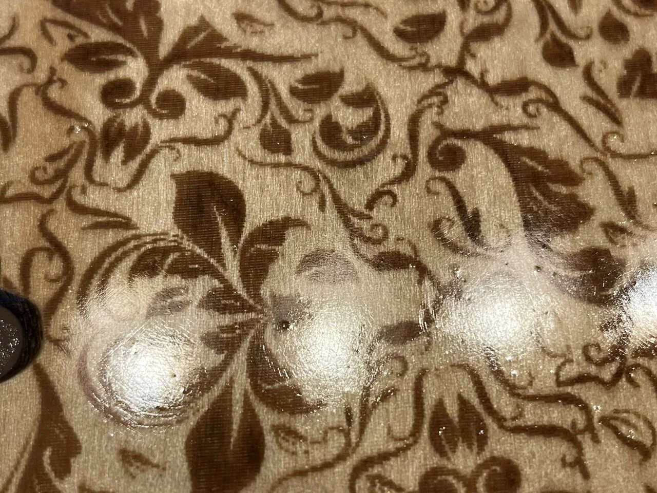 Das wurde dann zuerst mit Epoxidharz (1:2 Material aus dem Modellbaubedarf, relativ kurze Topfzeit) stabilisiert, damit nicht jeder Rempler gleich durch geht. Das empfiehlt sich eigentlich bei jeder Art Holz, das etwas Beanspruchung erfährt, bei diesem hauchdünnen Stück Sperrholz war es obligatorisch.