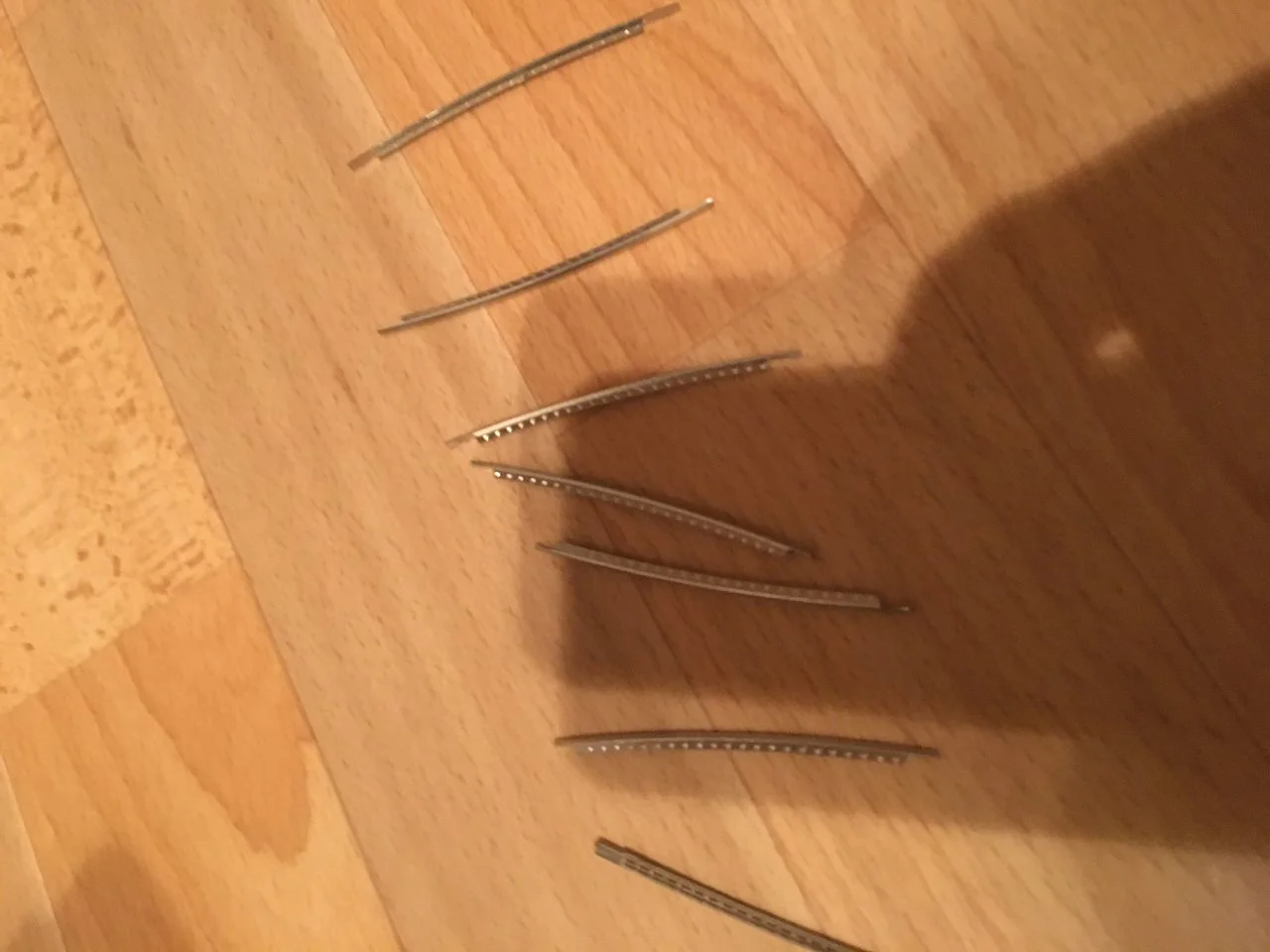 Links und rechts ist kein Platz im Griffbrett. Außerdem habe ich recht großzügig die Bünde abgesägt. Müsste alles gut passen. Wird nur viel Arbeit am Ende alles seitlich zu schleifen. Falls es nicht klappen sollte, bleibt noch die Säge. Bestelle dann neue Bünde. Aber müsste so gehen.So viel hättest Du gar nicht wegnehmen müssen - das ist nur bei grifbrettern mit Randeinlagen erforderlich.
