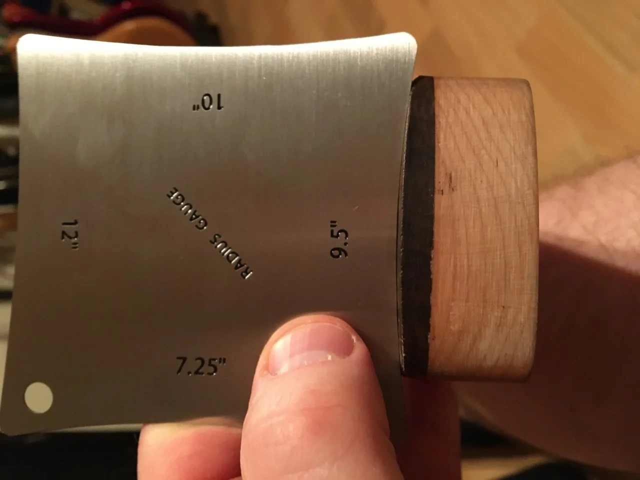 Im ersten Durchgang einfach mit einer Flachfeile ohne Griff die Halskante entlangfeilen. Ich habe schon kommerzielle Anbieter erlebt, die es dabei beließen.Wird nur viel Arbeit am Ende alles seitlich zu schleifen.