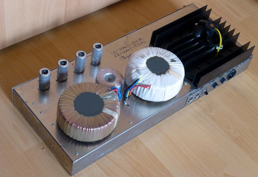Klassisch wird ja bei fetten Endstufen idR. ein grosser Ringkerntrafo verwendet (Ringkern wegen der kleinen Streufelder und der höheren Effizienz ggü. den Blocktrafos, Streuinduktivität mal aussen vor), dessen Sekundärspannungen dann über Brückengleichrichter und fette Siebelkos in Coladosengrösse laufen um eine möglichst saubere, lastunabhängige Gleichspannung mit guten Impulsreserven (Transienten) zu erhalten.