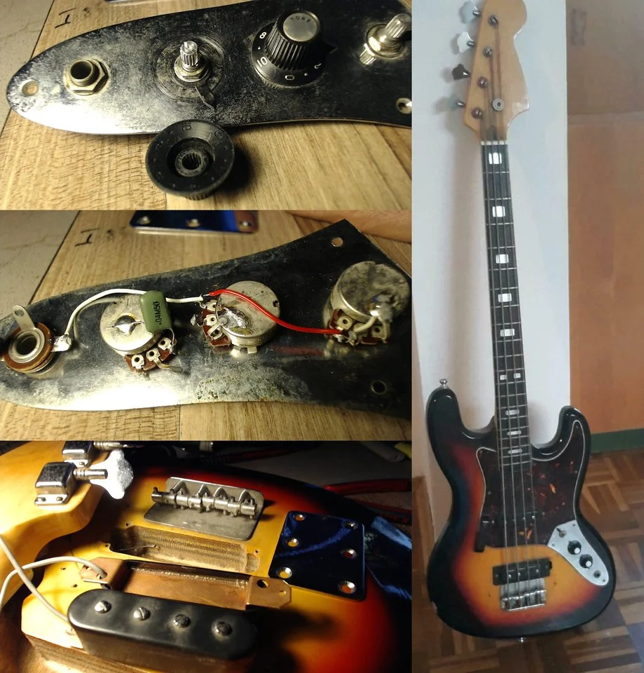 Fender-Kopie. Er war eine Leihgabe von einem Schulfreund. Wo der Bass ursprünglich herkam, weiß ich gar nicht. Laut Recherche ist er wohl aus den 70er und ein Japaner: