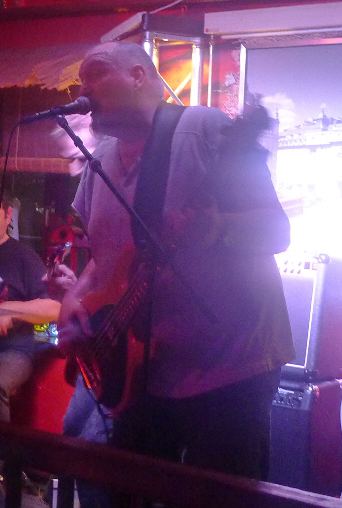 Allerdings gibt es da in Richtung Bodensee einen seeeehr, seeehr diiiiicken Bassisten, den ich das erste mal vor 5 Jahren oder so mit "Aligator Nailz", einer Blues- und Coverband, gehört habe. Er spielt meisst im Sitzen. Wenn der Mann loslegt, dann habe ich schon andere, gestandene Bassisten lautstark überlegen hören, ob es jetzt nicht der richtige Zeitpunkt wäre, einfach den Bass an den Nagel zu hängen und heute Abend gar nicht erst aufzutreten.....