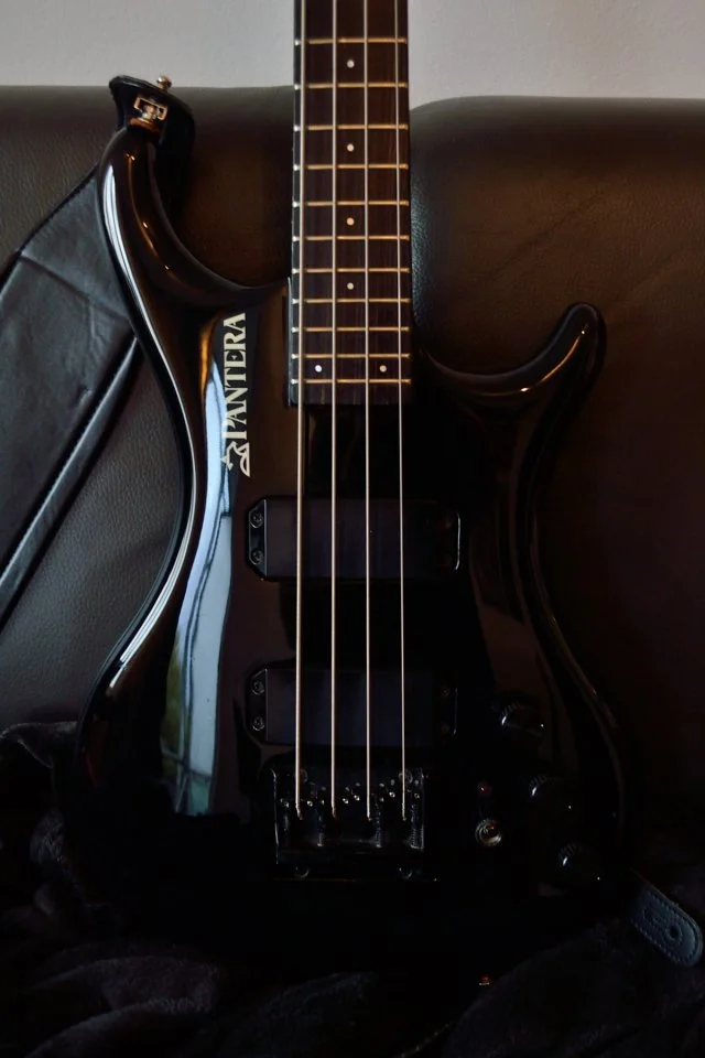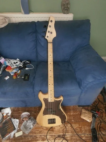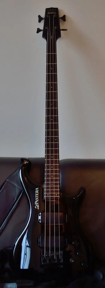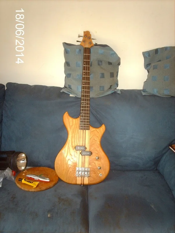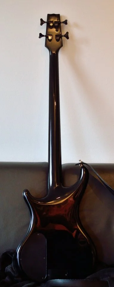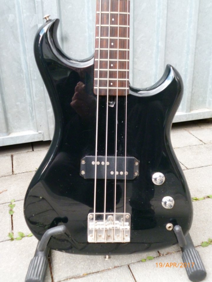 Verstärkt habe ich ihn noch nicht gespielt, aber so trocken hat er schon einen guten Klang. Haptisch super, kein mega-fetter Preci-Hals aber fleischig genug. So wie ich's mag.Die Verarbeitung ist gut, soweit ich das beurteilen kann. Ein paar Kampfspuren hat er, klar. Baujahr 1985-88, da hat sich was getan in der Zeit. Das Design entspricht dem damaligen Zeitgeist, er wirkt so ein wenig "aufgemotzt". (Vokuhila, Manta tiefergelegt, Klischee Klischee blablabla...) Korpus erinnert sowohl an Preci, die Hörner gehen aber mehr Richtung SG. Als wirklich gelungen würde ich die Kopfplatte bezeichnen, eine Variation vom 7ender-F. Der PU wirkt fett, aber die polepieces deuten natürlich auf einen split coil hin.