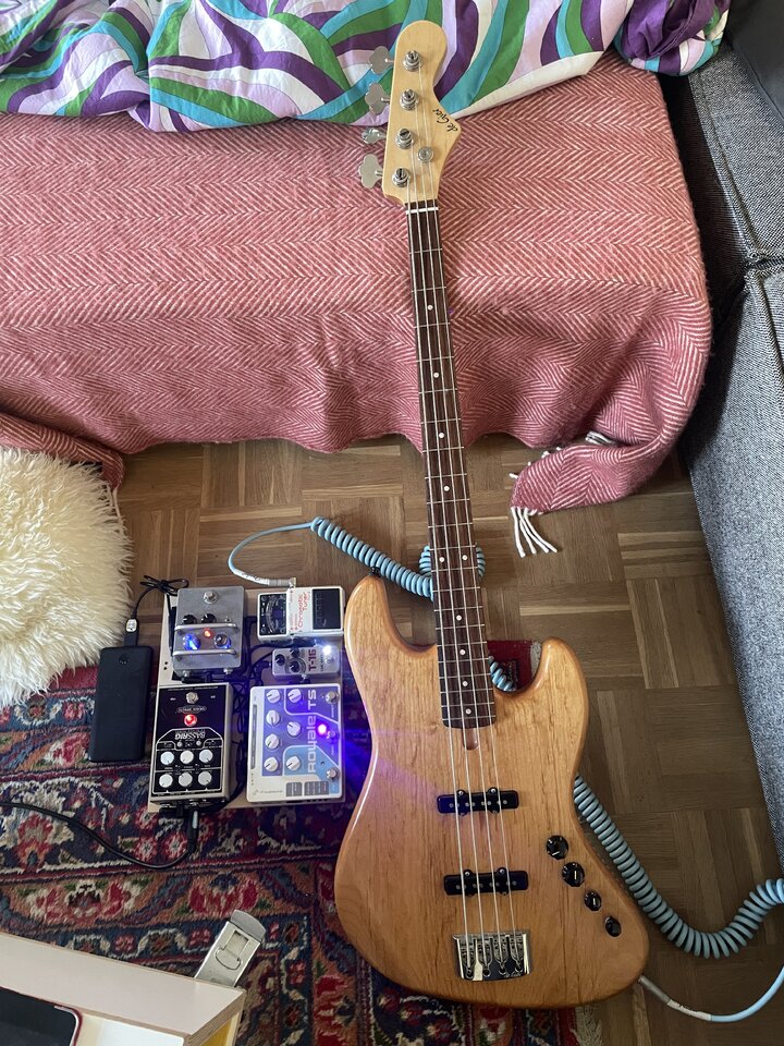 Der E-Bass ist ja für mich eigentlich nur ein Zweitinstrument, eigentlich bin ich Gitarrist und verwende den Bass nur Zuhause. Und da eigentlich nur für Blues und Rock'n'Roll Sachen. Aber ich finde den Bass ein tolles Instrument und habe auch schon ab und zu auf der Bühne bei einem Stück den Bass übernommen, damit unser Basser die Posaune spielen kann