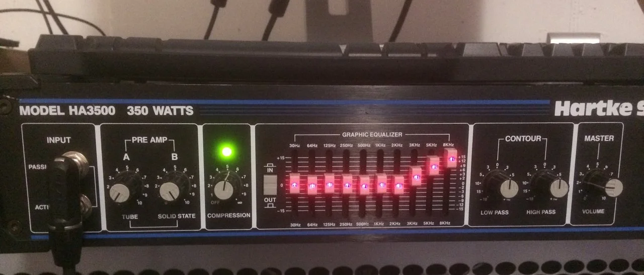 Hartke HA3500 funktioniert super. Ich war sehr naiv und dachte, um Brillanz zu erhöhen, soll ich einfach die Hohen verstärken (erstes Foto) Logisch oder