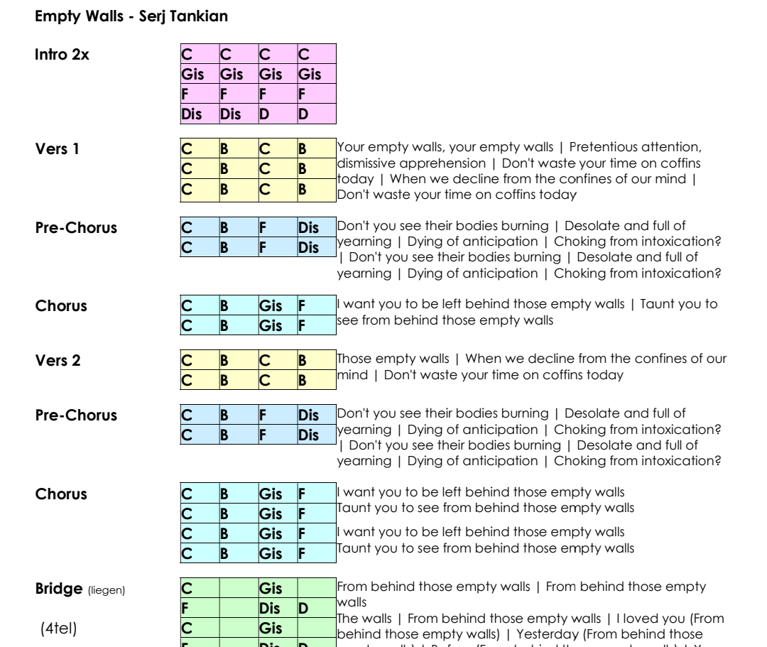 Ich werde mir jetzt wohl zu jedem Song möglichst knappe Notizen machen die mir als Wegweiser durch den Song dienen sollen. Die pack ich auf einen Notenständer. Sicherlich unbeliebt und uncool aber immer noch cooler als einen Break zu versemmeln, einen Chorus zu ünerziehen usw.