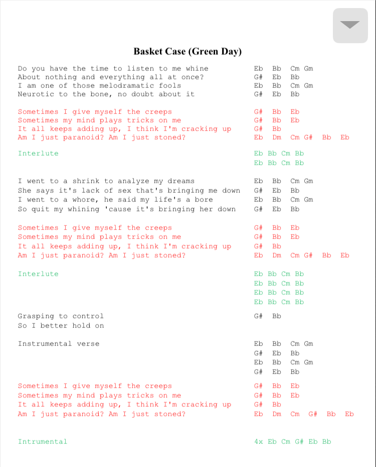 Ich finde man kann sich schon ein bisschen Mühe geben. Das sind meine Leadsheets - das ist auch keine BB. Für mich ist der mind Standard. Die 4 Takte lass ich zu Gunsten des "eine A4 Seite" manchmal ausser acht.