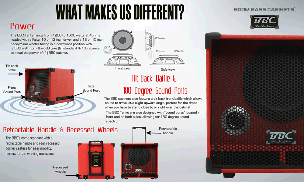 wenn du mehr tiefbass auf der bühne brauchst, gibt’s die BBC Tank 1215 (12“+15“) 1600W = etwas grösser + mehr gewicht. Die treiber/speaker sind Faital Pro: http://www.boombasscabinets.com/wp-content/uploads/2015/06/BBC-US-CUSTOMER-pricing-JUNE-8-2015.pdf