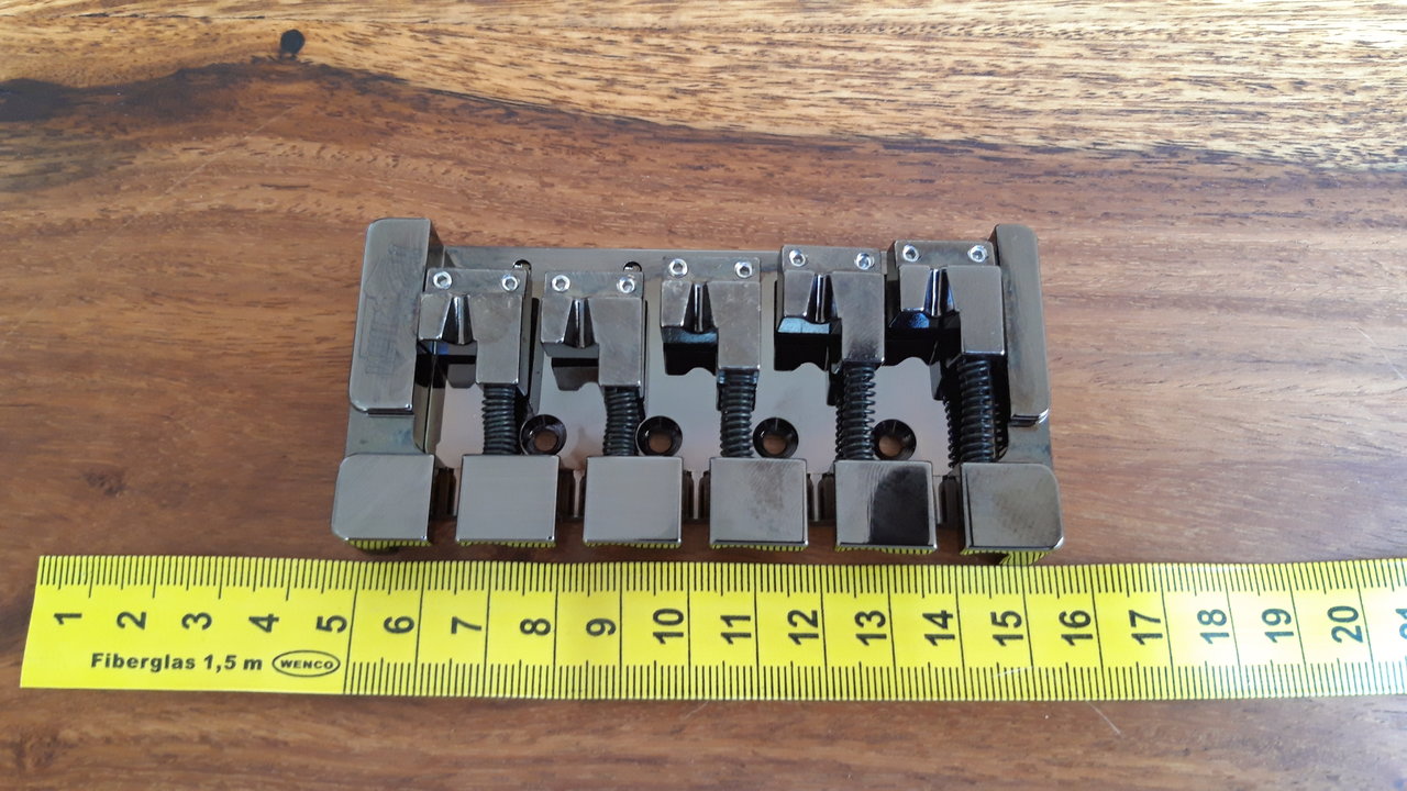 Nie benutzt, weil ich mich verkauft habe. Glaube 19,3mm String spacing an den Reitern, war zuviel. Ich bevorzuge 18mm. Daher geht die Brücke weg. Kann bei Bedarf gerne noch mal nachmessen.