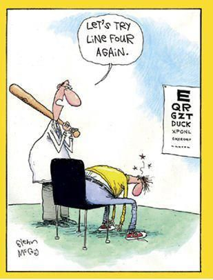 Sowas ähnliches habe ich mal in einer Augenklinik erlebt, nur ohne Baseballschläger. Den hätte ich dann gerne gehabt.