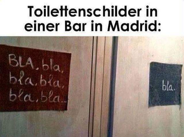 Denk jetzt bitte bloß nicht, dass ich nicht sofort verstanden hätte, wie das hätte gemeint sein sollen.Beate !!! Das war Frauentoilette (blablablablablabla) und Männerklo (bla)![]()