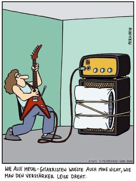 Da hat Perscheid aber mal keine Ahnung. Eine echte Gitten Vollröhre muss man ausfahren, damit die richtig klingt. Leiser drehen ist keine Option. Höchstens ne Power Soak oder eben den Amp in den Nachbarraum stellen und Tür zu.