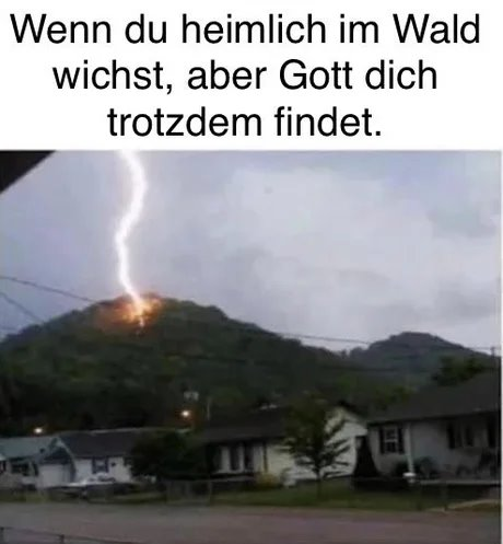 Ob der Blitz wirklich in den Wald einschlägt? Oder vlt eher in die elektrische Freileitung im Vordergrund?