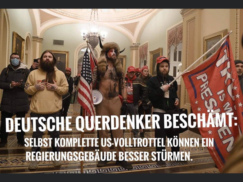 Das ist der Querdenker unter den Querdenkern, ein sogenannter Maskenverweigererverweigerer...Das ist doch Fake! Der eine trägt ja eine Maske...