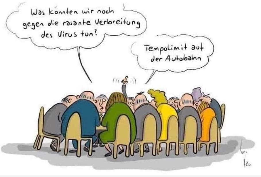 Bitte bringt sie nicht auf Gedanken...Ist doch klar, daß das hilft. Dann kommt das Virus nicht jede Stunde 150 km weiter, sondern nur maximal 130 oder 100 ...