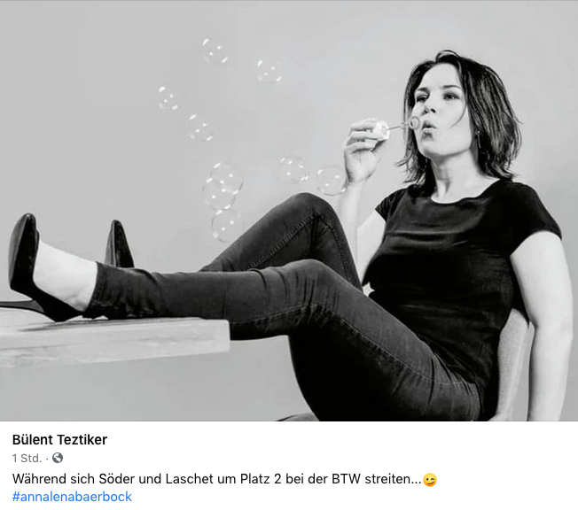 "Leute, Ihr wißt, was zu tun ist: hängt Annalena Baerbock alles an, was Euch einfällt - Kommunistin, schlechte Mutter, will Grillwurst und Autos verbieten. Auf die Kampfstationen!"