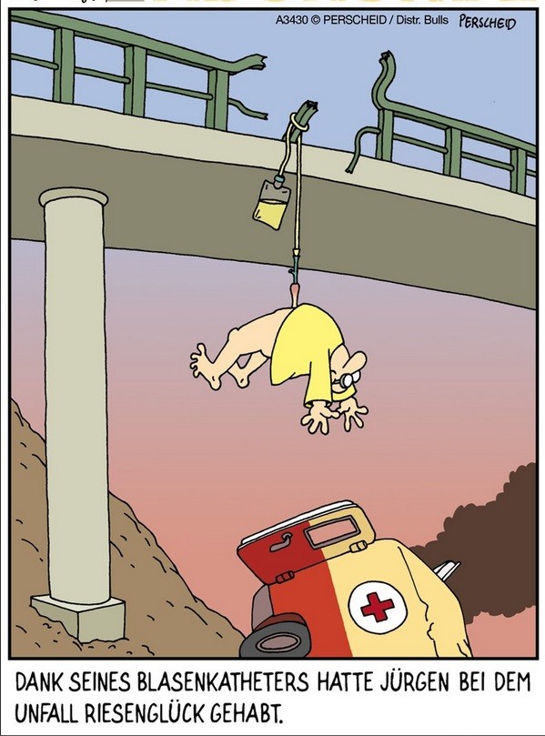 Das erinnert mich an den alten Otto-Witz mit den zwei Maurern, die vom Gerüst fielen. " Der Eine hatte Glück! Er bliebt mit dem rechten Auge an einem Nagel hängen..."