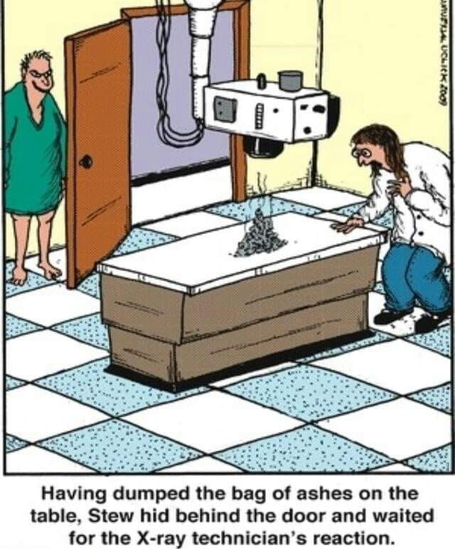 Naja, hättest du denn wenigstens einen Sack mit Asche dabei gehabt?Ging nicht. Nach dem ersten Bild kam die Dame mit einem Rollstuhl rein. Bis zur Tür hätte ich es mit dem gebrochenen Bein nicht mehr wirklich geschafft. Mit dem Fahrrad ins Krankenhaus und zu Fuß ins Röntgenzimmer war schlimm genug.